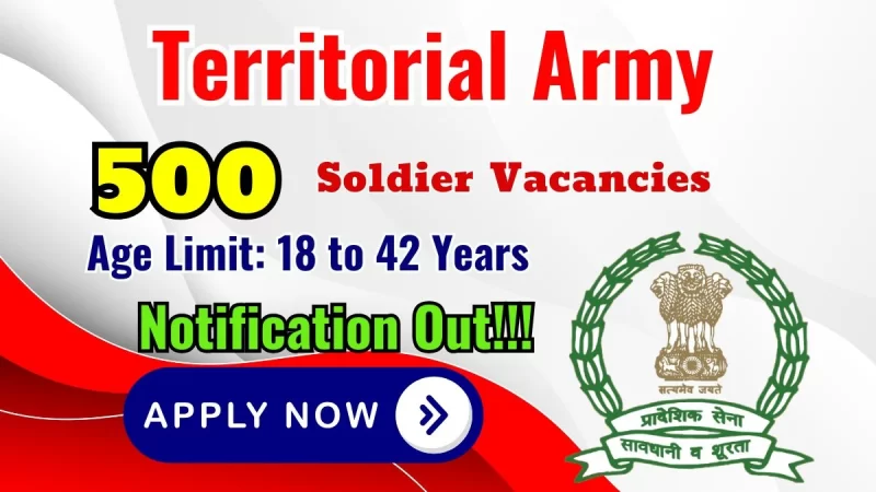 Territorial Army Recruitment 2025 for 500 posts of Soldier. 10th, 8th pass candidates can apply online. Online application opens on 15-11-2025 and closes on 14-12-2025. Candidates will apply online through Territorial Army website, territorialarmy.in.
